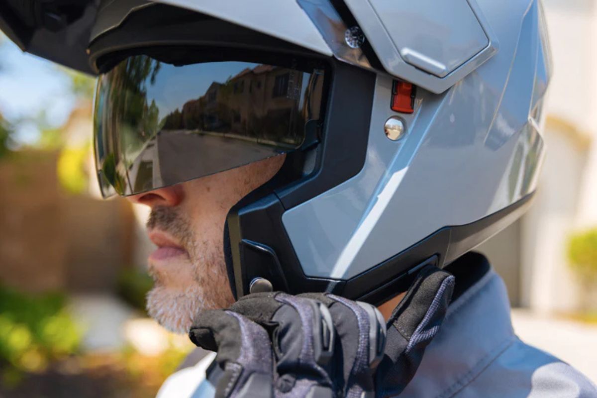 A chin curtain is included to help manage airflow and reduce drafts, particularly at highway speeds.