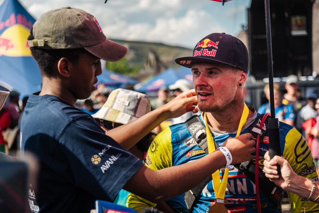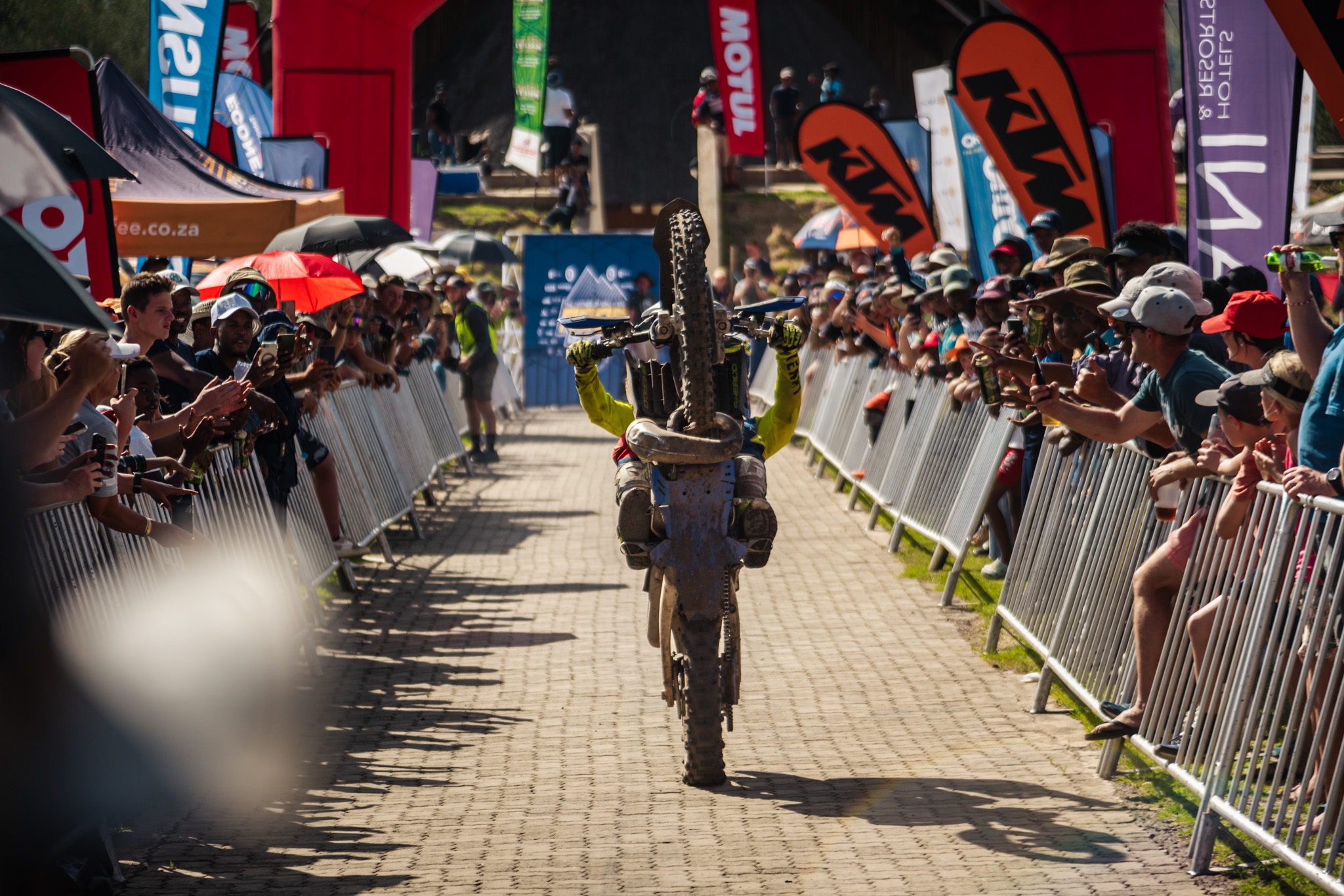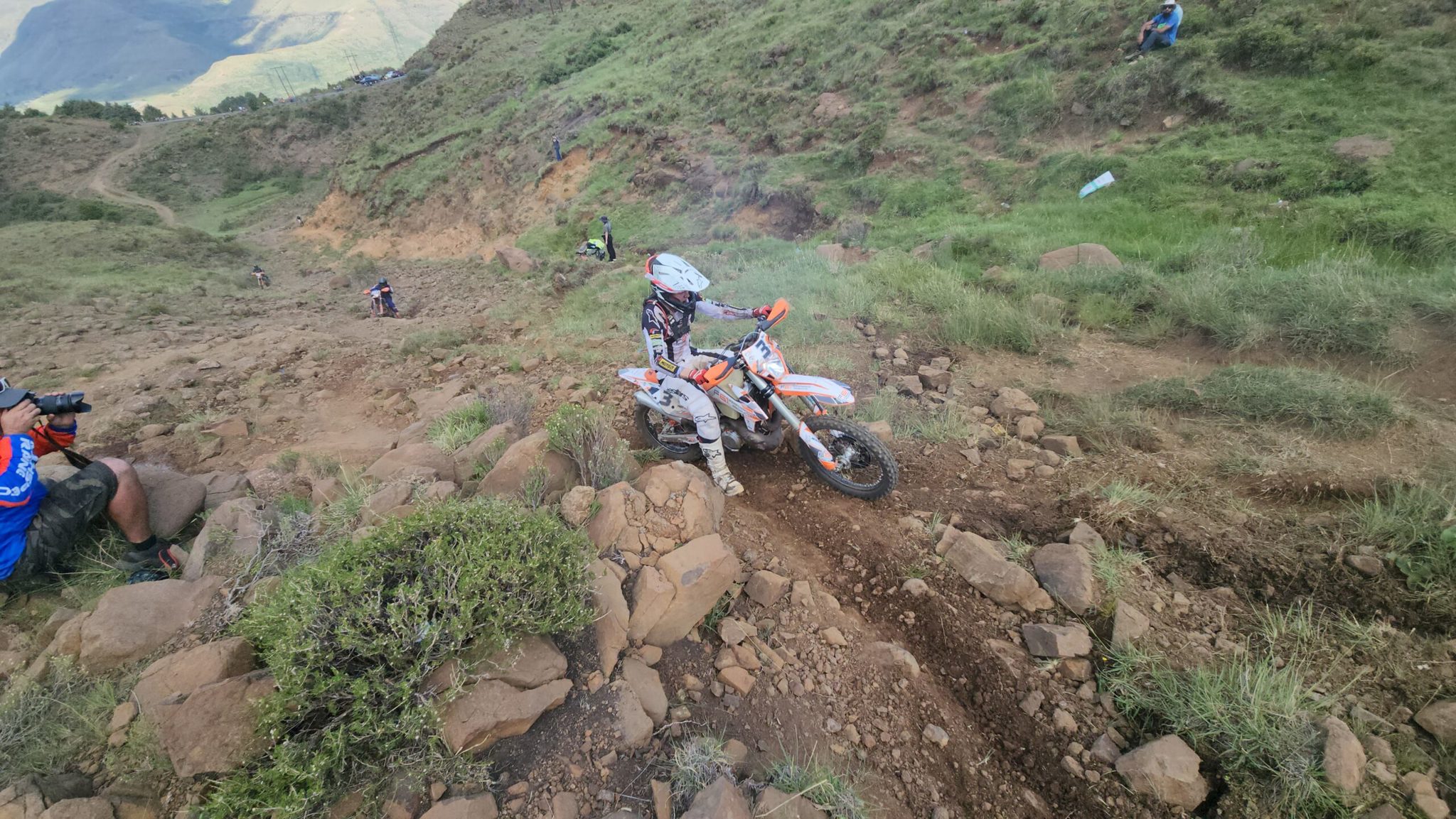 Wade pulled a massive wheelie as he came in to roars of approval from all present. The Basotho people love Wade. He has made Lesotho his own. He is the king of the mountains.