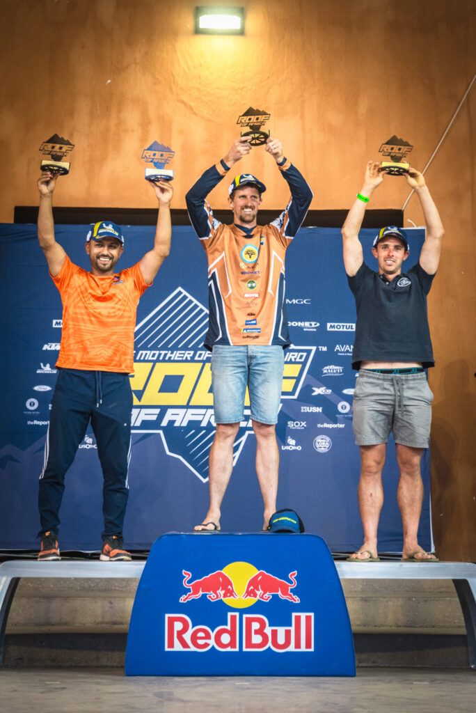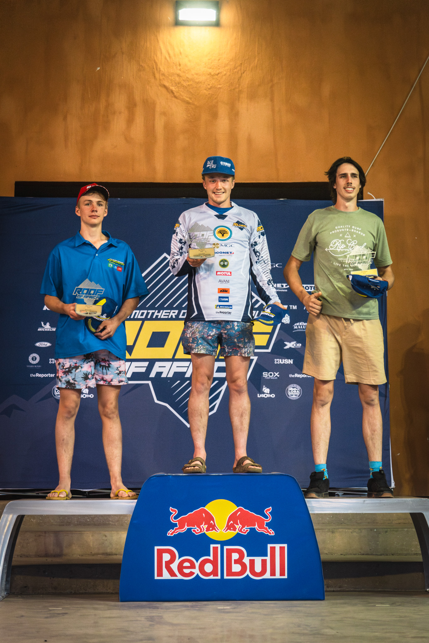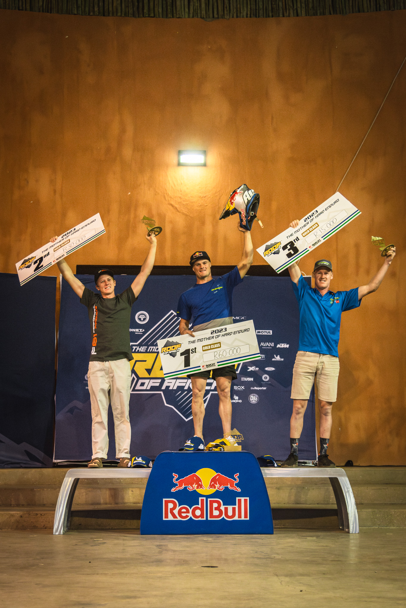 A long, long race determined the three premier riders in the bronze class, the biggest class at The Roof. Boys. Fantastic! Louis-Bresler Knipe on his 500 (yes, read that again) Sherco took the win. He was followed by Shabeer Moosa on his KTM and Tyrone Bird on the Husqvarna.