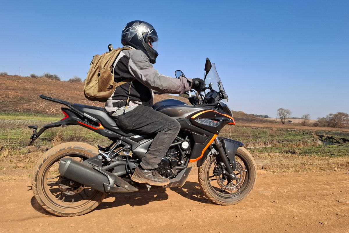 Back then it performed admirably on both tar and dirt. We now have this unit as a bit of a long term demo and for the most part Deon, (fairly green to motorcycling), has been riding it. However, we had a big Adventure bike test at Breedtsnek planned and had to collect another bike along the way. And thus, Deon pillioned with Glenn and I rode the Voge DS 300 on the 2 hour trip from our office to Breedtsnek. The route was mostly high speed freeway riding and sweeping A-roads to the dirt roads leading to Breedtsnek.