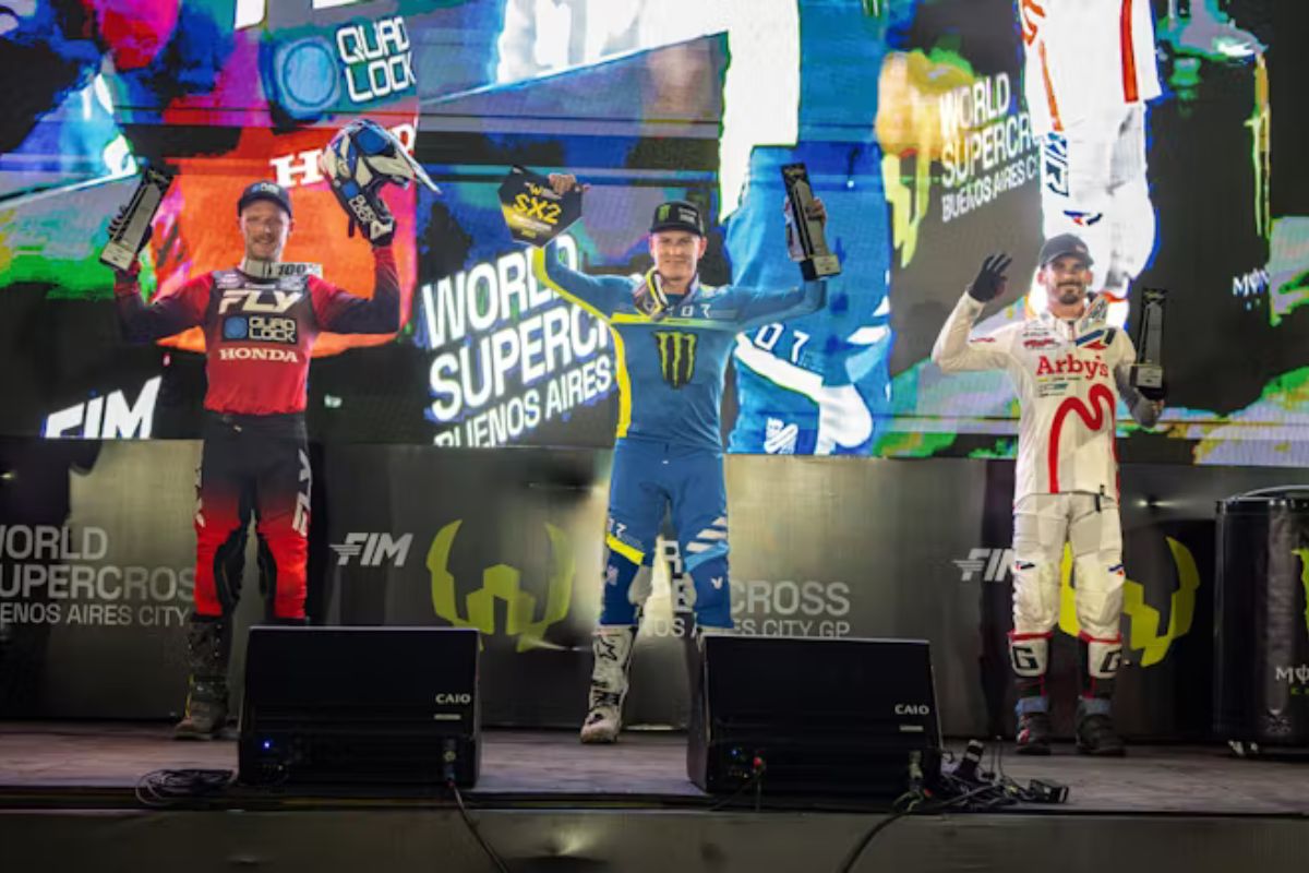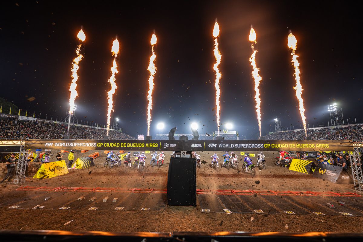 The opening round of the 2025 FIM World Supercross Championship didn’t just start the season, it detonated it. Buenos Aires lit up like a festival in full swing as fans packed the Autódromo Oscar y Juan Gálvez, the air heavy with the smell of race fuel and the buzz of pure anticipation. Before a single gate had dropped, fireworks were already cracking across the sky, lasers sliced through the smoky arena haze, and the crowd roared as if they were summoning the riders into battle. It was wild, loud, and beautifully chaotic.
