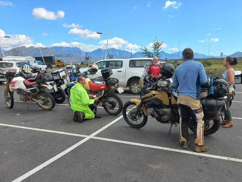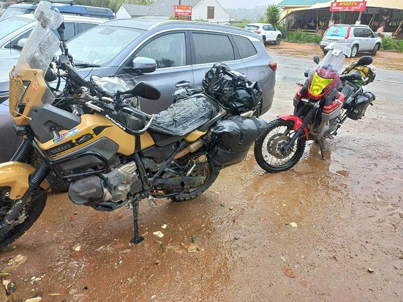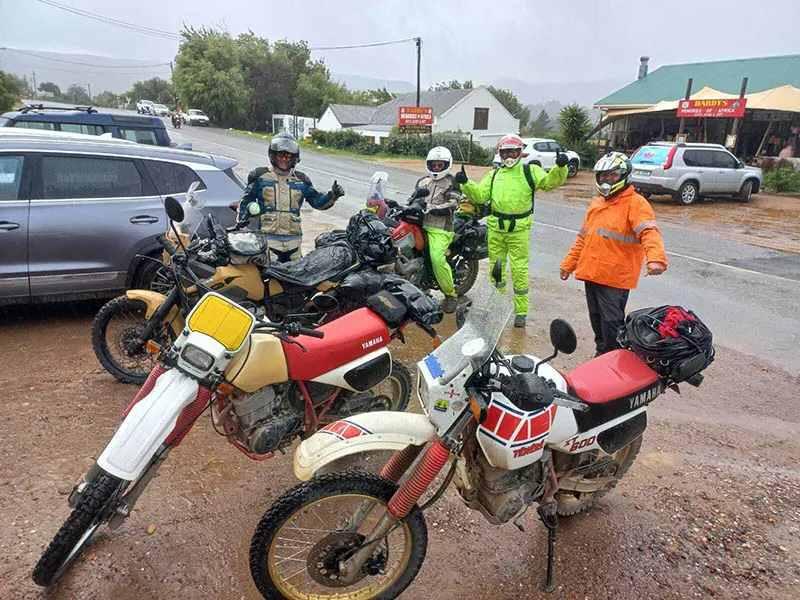 The preceding Tuesday, being a public holiday, allowed some of the long-distance riders to cash in and add some out-of-the-way destinations in this beautiful adventure-travel-friendly country of ours, to their trip. Photos streamed into the Whatsapp group. The weather was changing daily, sometimes almost hourly, with riders getting a bit wet, fording some muddy roads and plenty of water crossings, but in general, all went well and bikes started arriving at Koedoeskloof from around lunchtime on Friday.