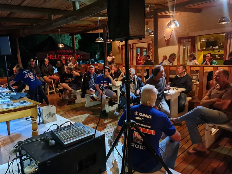 Saturday started with breakfast and a group photo. A new record of 54 Yamaha’s, including Ténéré 500s, T7s and S10s, was recorded. Originally, a mass ride was contemplated, but due to varying dirt riding skill levels, the group split into smaller groups. Some rode to the Gamkapoort dam, via the magnificent Seweweweekspoort, and returned the long way around along the Anysberg road, a most satisfying Adventure ride. Some chose to ride to the dam and return whilst others just scouted the surrounding roads, returning for some afternoon conversation on the veranda, aided by a drink or two.