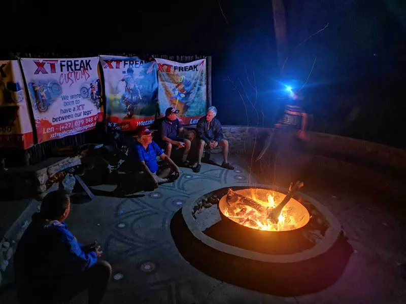 After accommodation was sorted out, the veranda filled up with happy voices that continued well into the night, supported by a good supper. Some went to bed earlier, to rest after some long rides, the vibration of snoring taking on a rhythm that spoke of peaceful sleep. Others enjoyed the fire and conversation till the early hours of the morning.